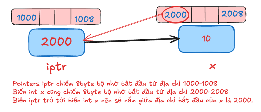 int *iptr; // khai báo biến pointer iptr kiểu dữ liệu int